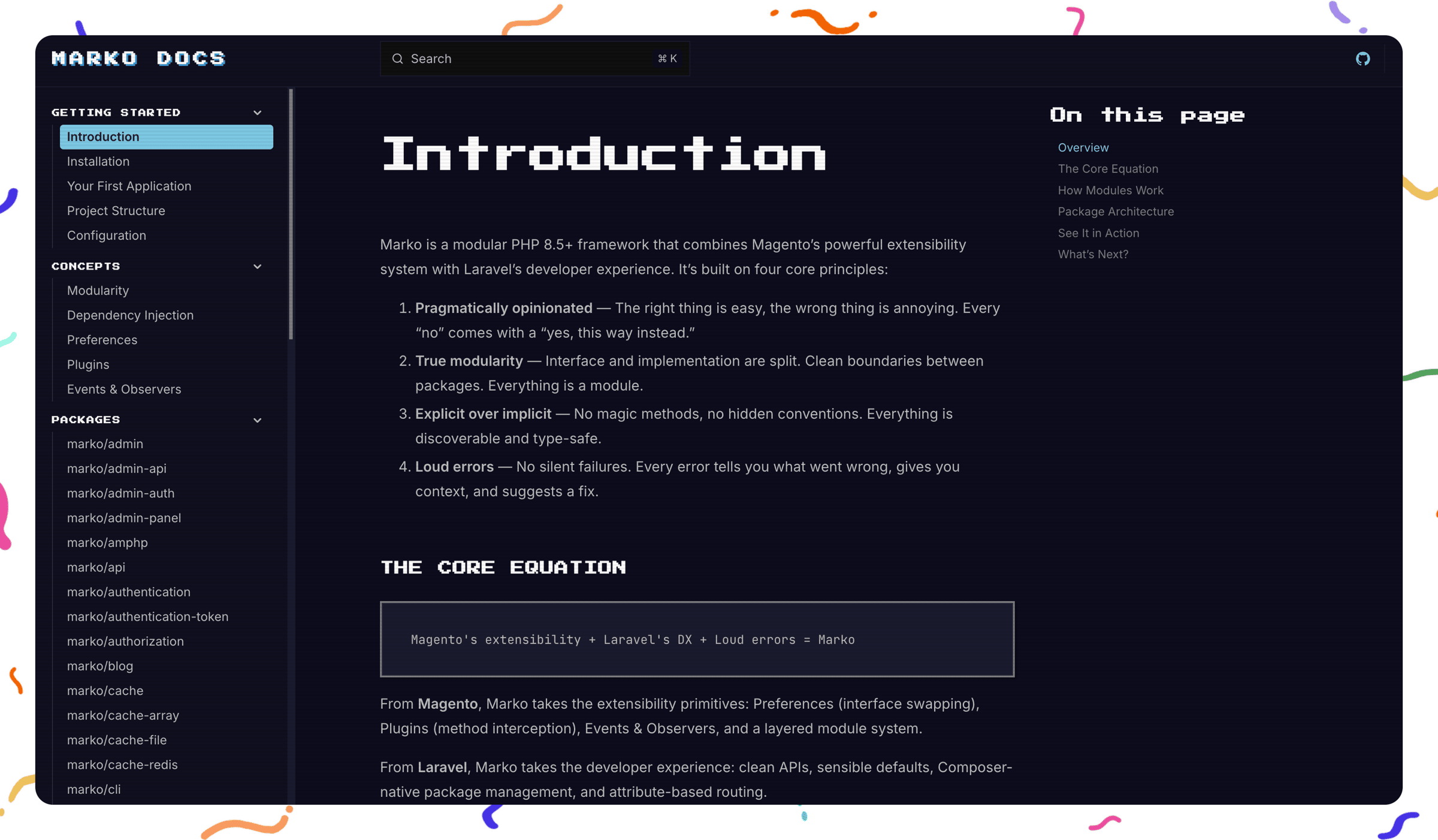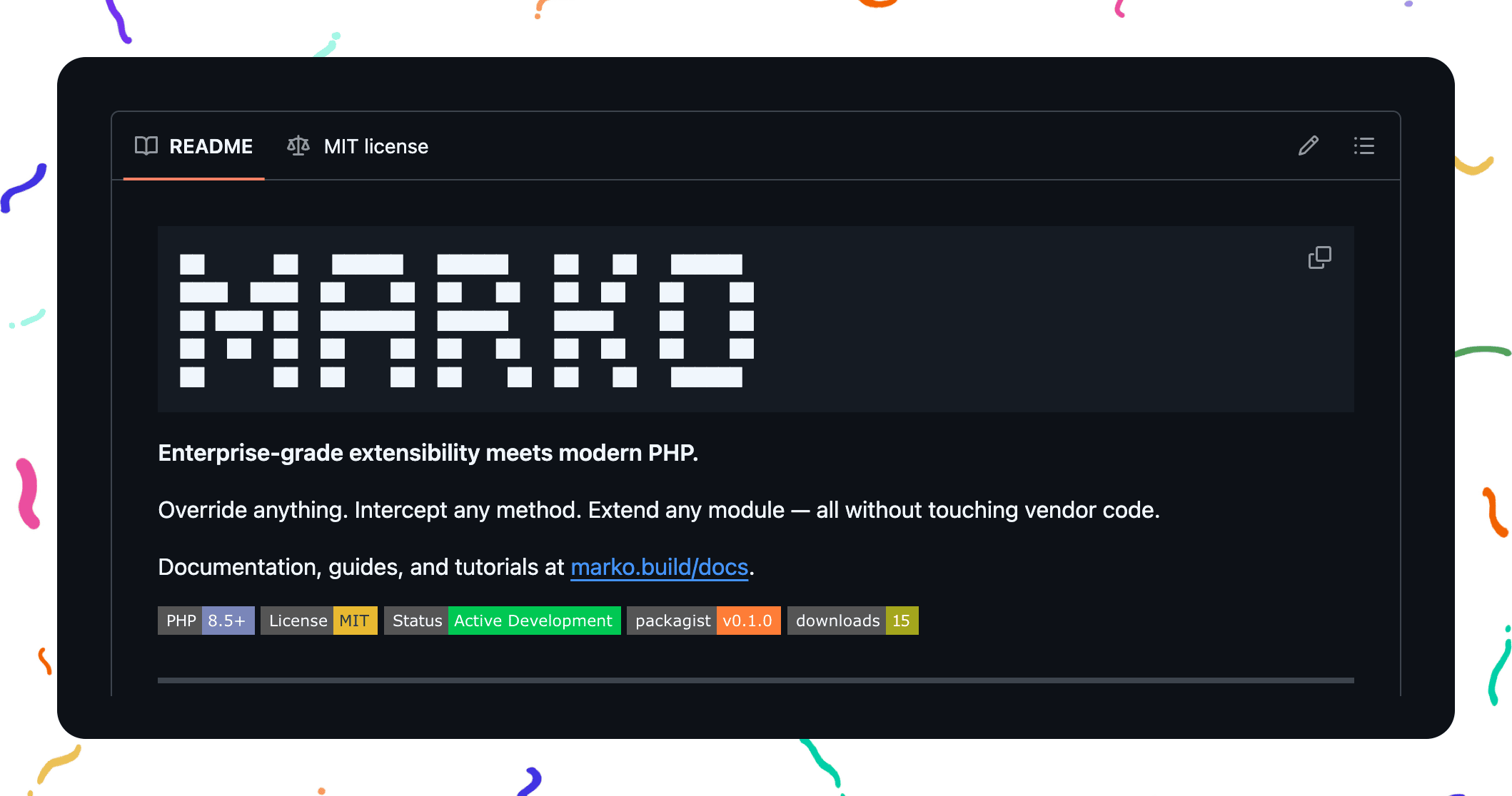 Hey Reader, A few days ago I sent you a bit of a teaser. Something about wiping the slate clean and building the one thing I wish existed: Magento 3. Well.. here it is. It's called Marko, and it's a brand new, truly modular PHP framework. I know, I know -- "Mark built a framework" sounds like the punchline of an April Fools joke. But this one's real, and I've actually been building it for months behind the scenes, and it's my most significant contribution to open source since the release of docker-magento. The short of it is that I took everything I've learned from working with Magento for 10+ years and compressed it down into the parts that actually work: true modularity, dependency injection, plugins, and events -- and rebuilt all of it from scratch. No XML. No generated code. No cache gymnastics. Just clean code with modern PHP conventions. I like to think of this as what the Magento architecture could become, if it didn't carry nearly 20 years of backwards compatibility along with it. Here are a few things that make it different: